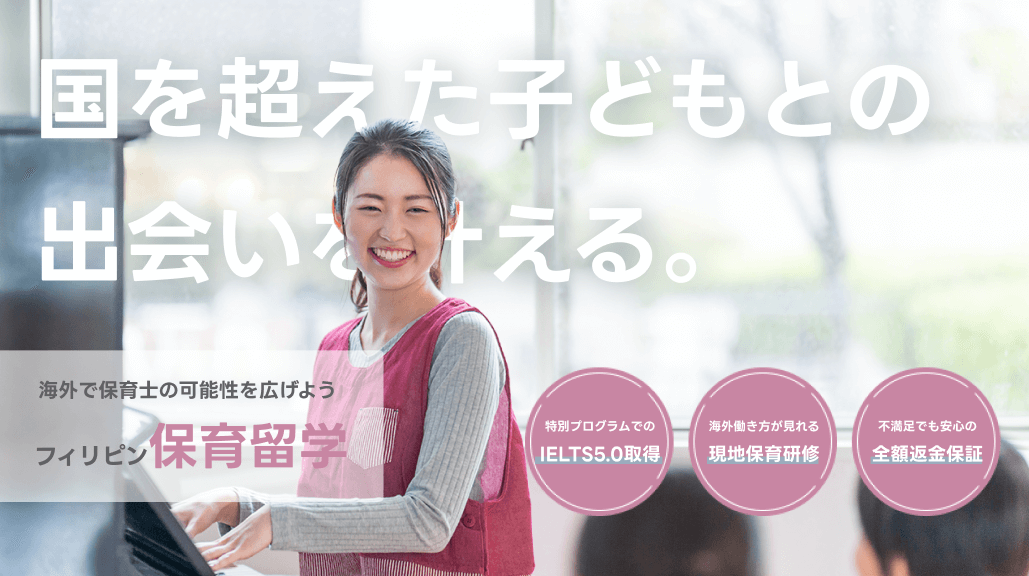 IELTS5.0を目指し海外での保育士として必要な英語力を習得した後に、現地の保育施設での研修プログラムで、実際の保育現場での経験を積む機会が設けられます。