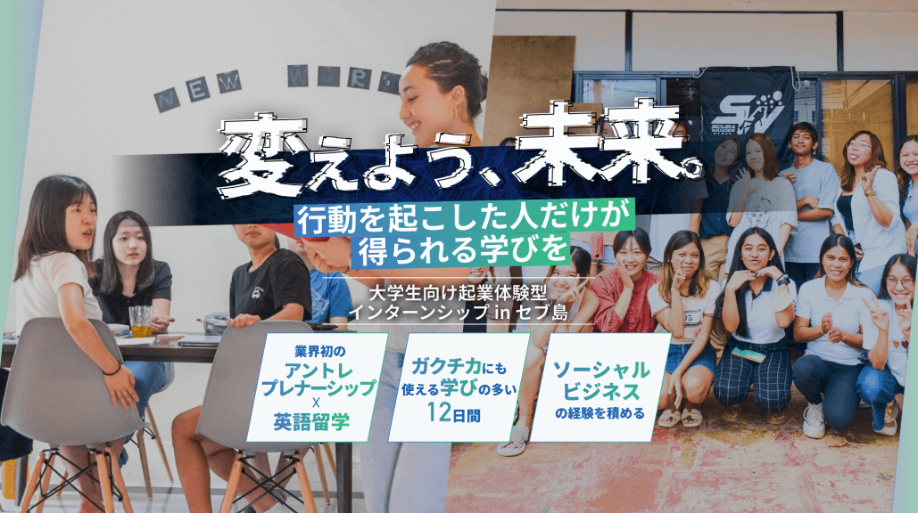 日本各地からセブ島へやってきた大学生が社会課題発見を通してアイデアを立案し、実際の企業経営者のフィードバックを受けながら事業を作り上げていくプログラムです。