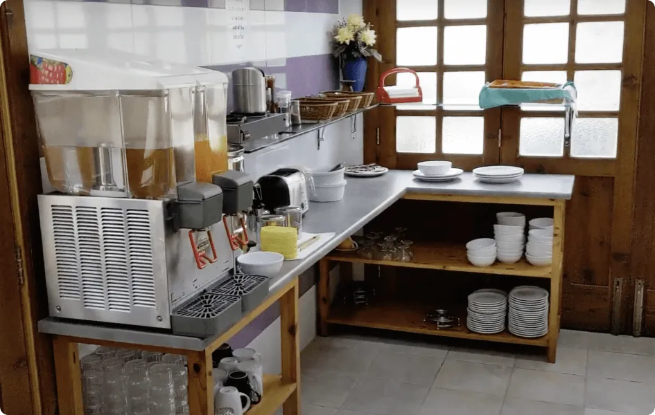 無料Wi-Fi、無料SIMカード支給、PCスペース、ラウンジ、自動販売機、コーヒーマシン、電子黒板、図書館、屋外パティオとミニガーデン
