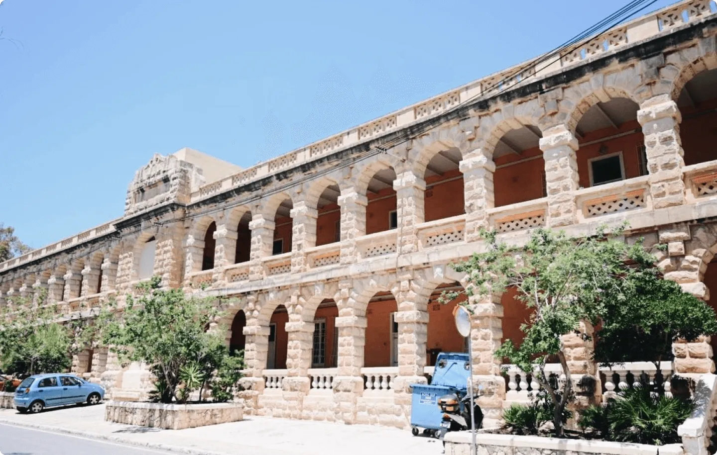 中心街セントジュリアンから徒歩20分に位置するため、他の多くの語学学校とは違い喧騒も少なく、緑に囲まれた校舎でゆったりと集中できる環境が整っています。近くには商店もちらほら。