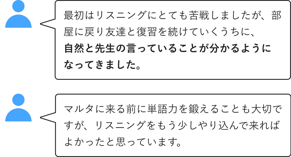 Sprachcaffe Maltaでは、レセプションが24時間稼働。日中は日本人スタッフも在籍しているので、英語に自信がない方でも安心です。学校やマルタについての質問から、携帯のSIMの購入の仕方までどんな些細なことでも優しく教えてくれます。初めての海外生活や英語でのやり取りに不安がある方には、とても助かるサービスでしょう。