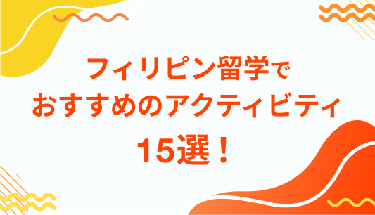 せっかくフィリピンに留学したのだから、遊びも楽しみたい!おすすめのアクティビティを知りたい!こんな思いを持っているみなさん!