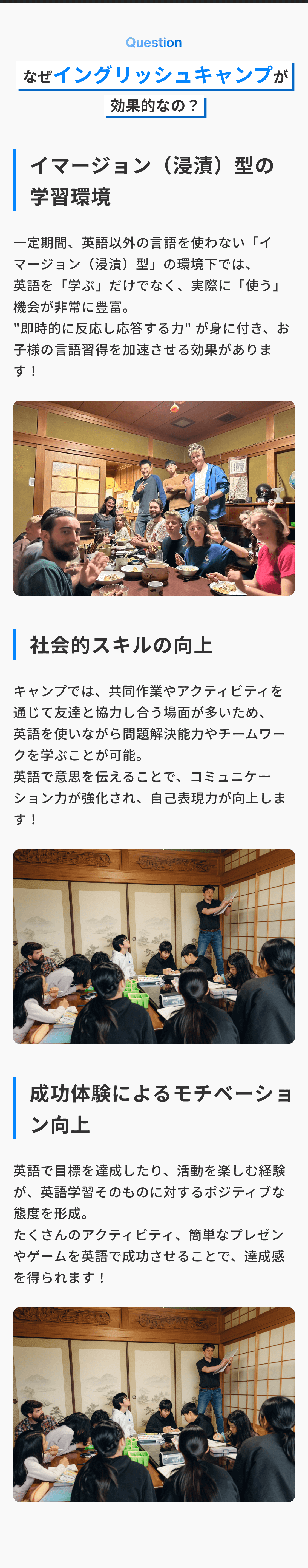 青い海や豊かな自然に囲まれた沖縄では、リラックスした雰囲気の中で英語学習に取り組むことができます。非日常の環境だからこそ、新しいことにも前向きに挑戦しやすく、子どもたちの好奇心や自主性を引き出せるのが魅力です。