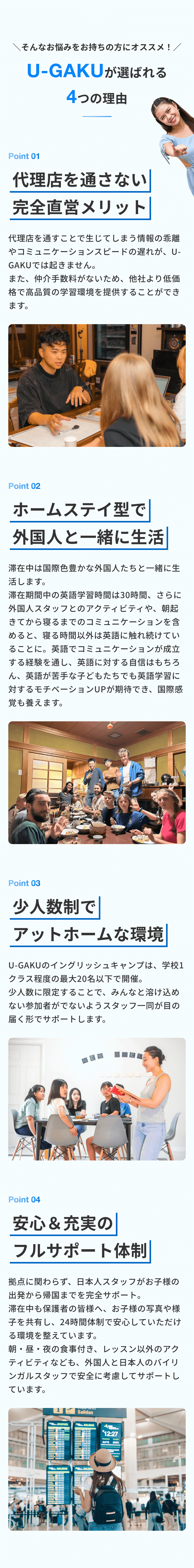 日本人スタッフが24時間常駐し、安全を最優先に考えた環境です。