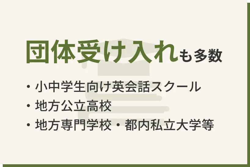 一回あたりの定員は最大60名程度で、そのうち約15〜20名程度の外国人研修生が滞在するため、少人数ながら多国籍な環境で学べる構成になっています。