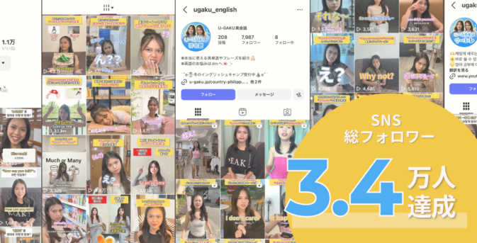 U-GAKUは、フィリピン・セブ島から教科書では学べないリアルな英会話表現を発信する「U-GAKU英会話」アカウントを運営しており、2025年11月時点で総フォロワー数が3.4万人を突破しました。