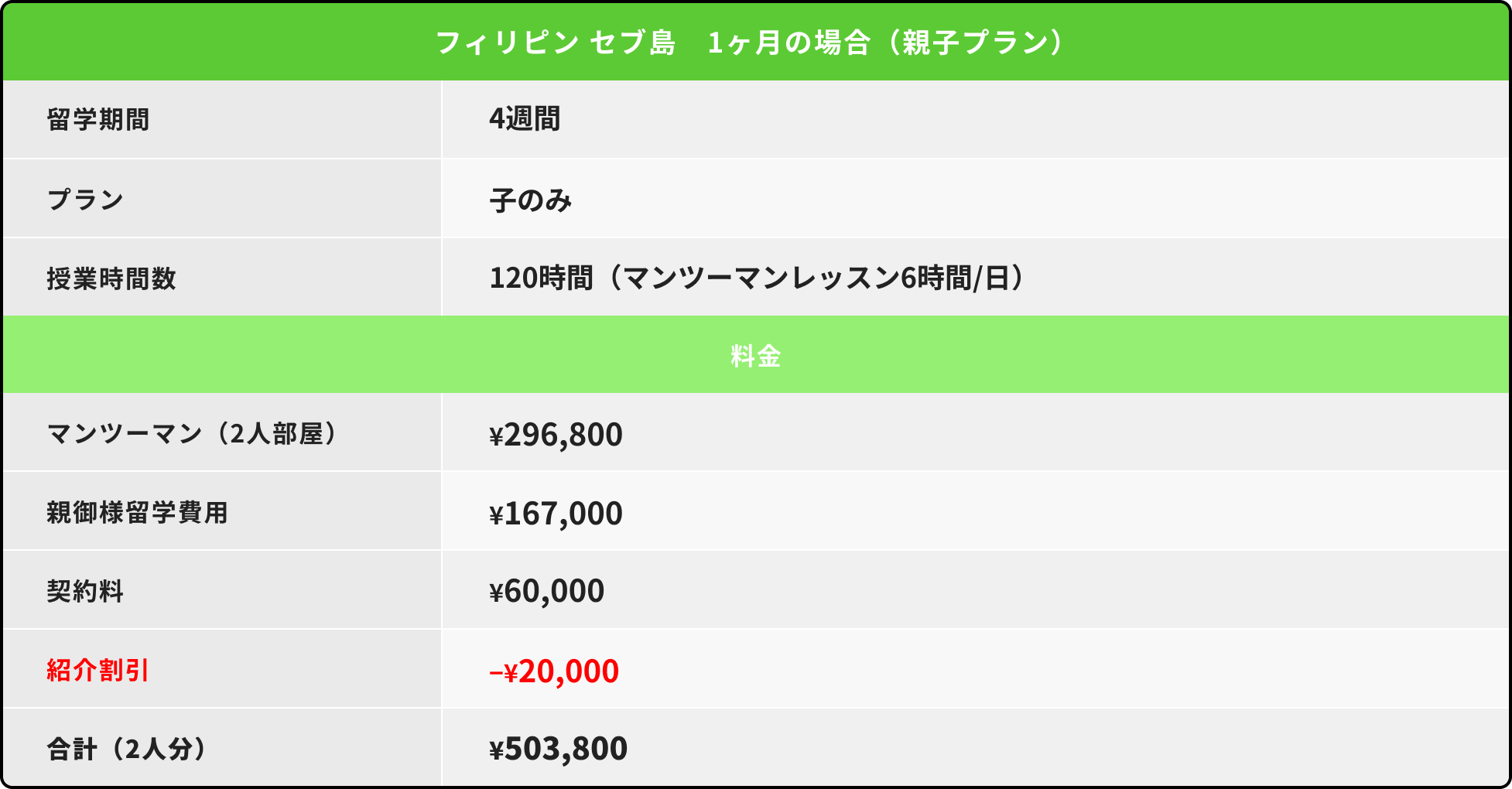 保護者の方は授業を受けずにお子様だけ授業を受けるプログラムとなっております。保護者の方は授業を受けたくないけど、お子様にフィリピン留学を経験させたい方にオススメです。お子様が授業を受けている間は、自由行動でショッピングやマッサージ等を思い思いに楽しむことができます。