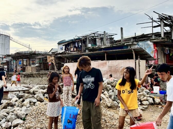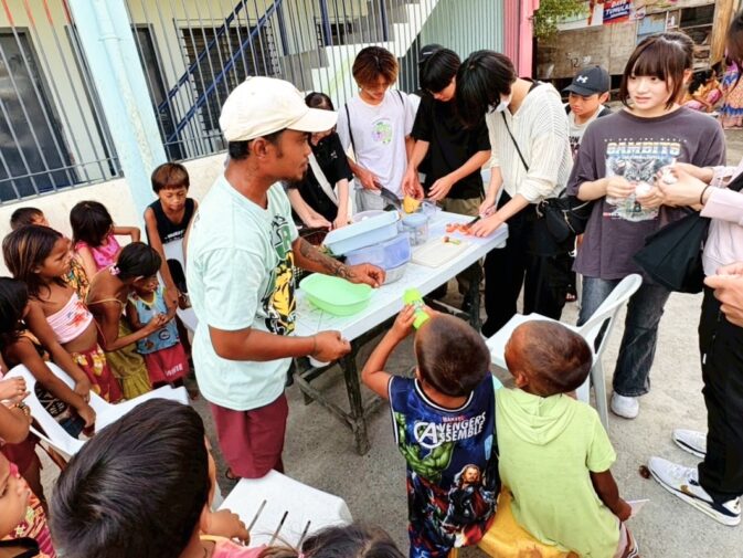 大量のごみや匂いに衝撃を受けつつ、住民の温かさにも触れました。6日は水上スラムで野菜入りお粥を調理し、子どもたちに配布。限られた環境でも笑顔を見せる姿が印象的でした。