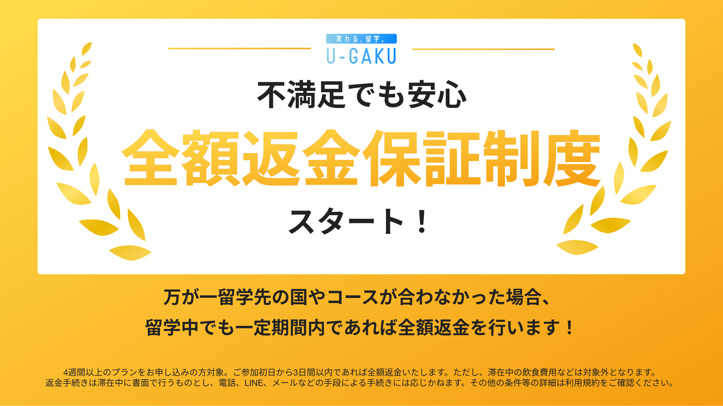 はい、国内拠点スタッフが留学生活をサポートします。また、参加後の全額返金保証制度もあるため、安心してお申込みいただけます。詳しくはこちらのページをご覧ください。