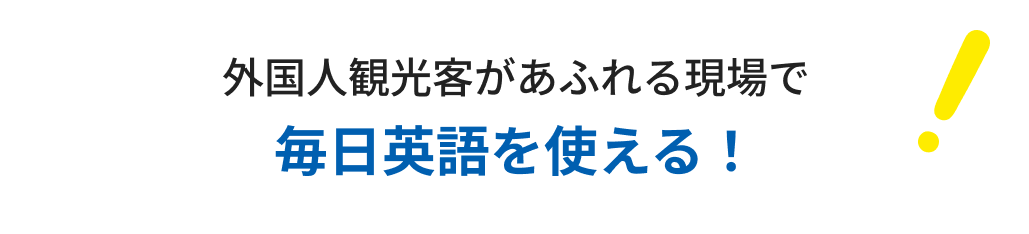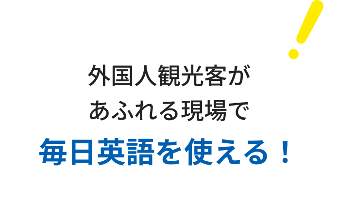 リゾートホテル、レストラン、カフェなどで外国人観光客を相手に英語を使う接客・運営業務が中心です。英語を実際に使う機会が多く、働きながら学べる環境です。