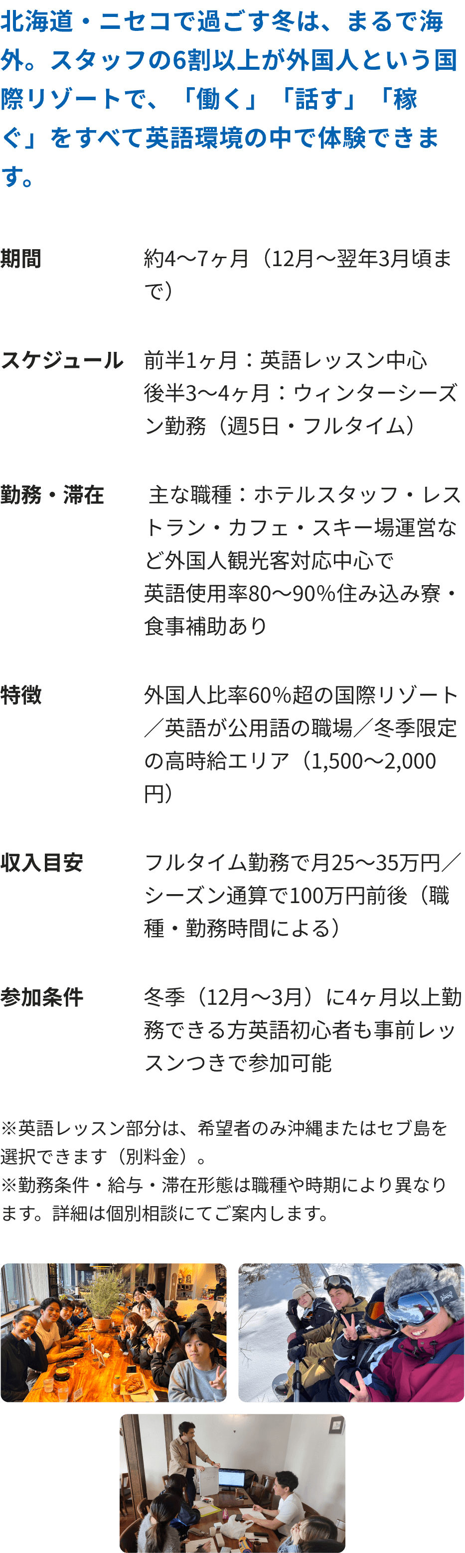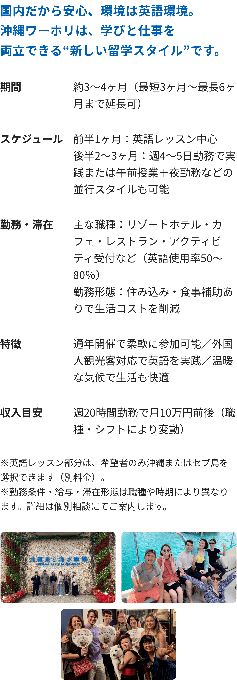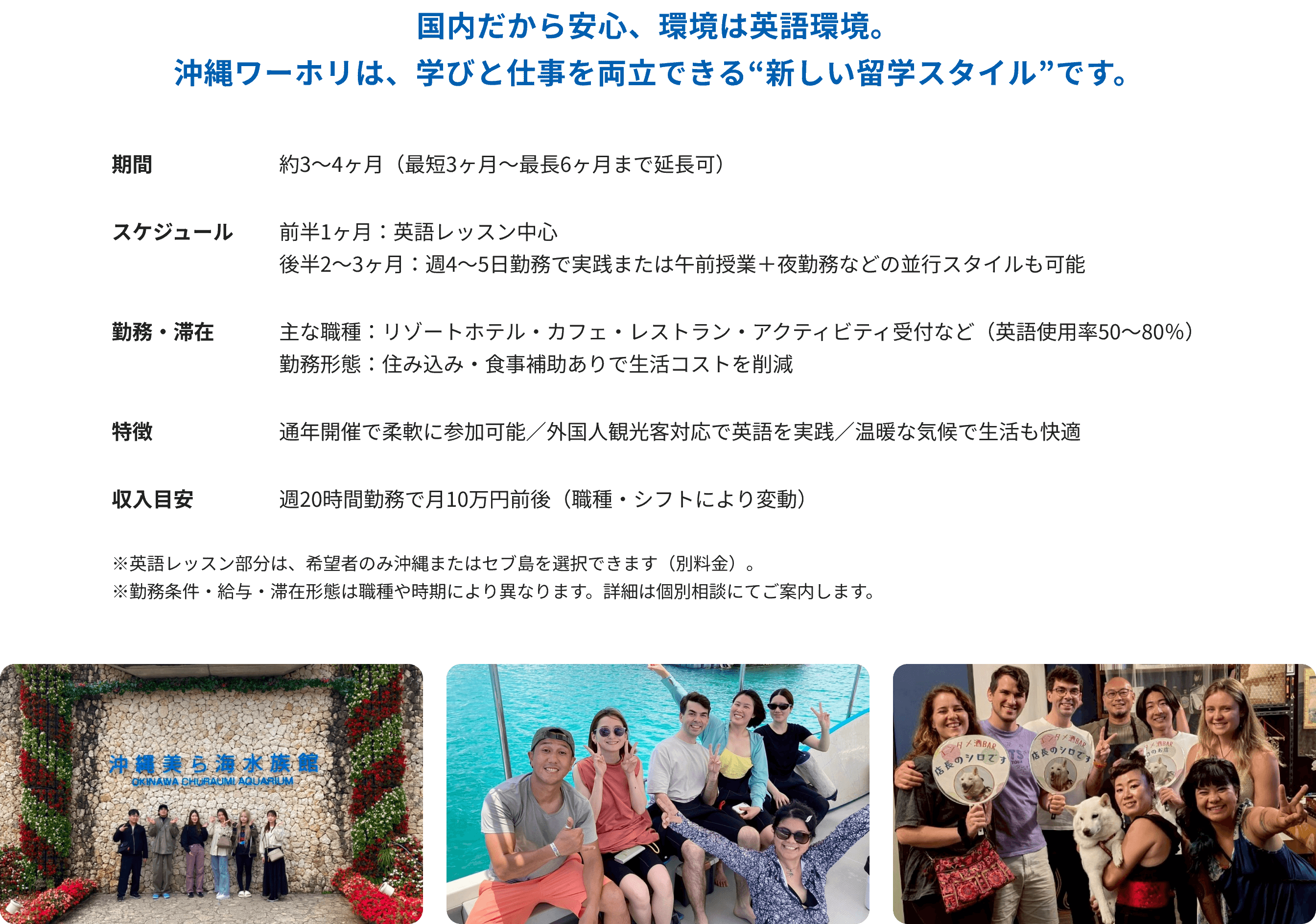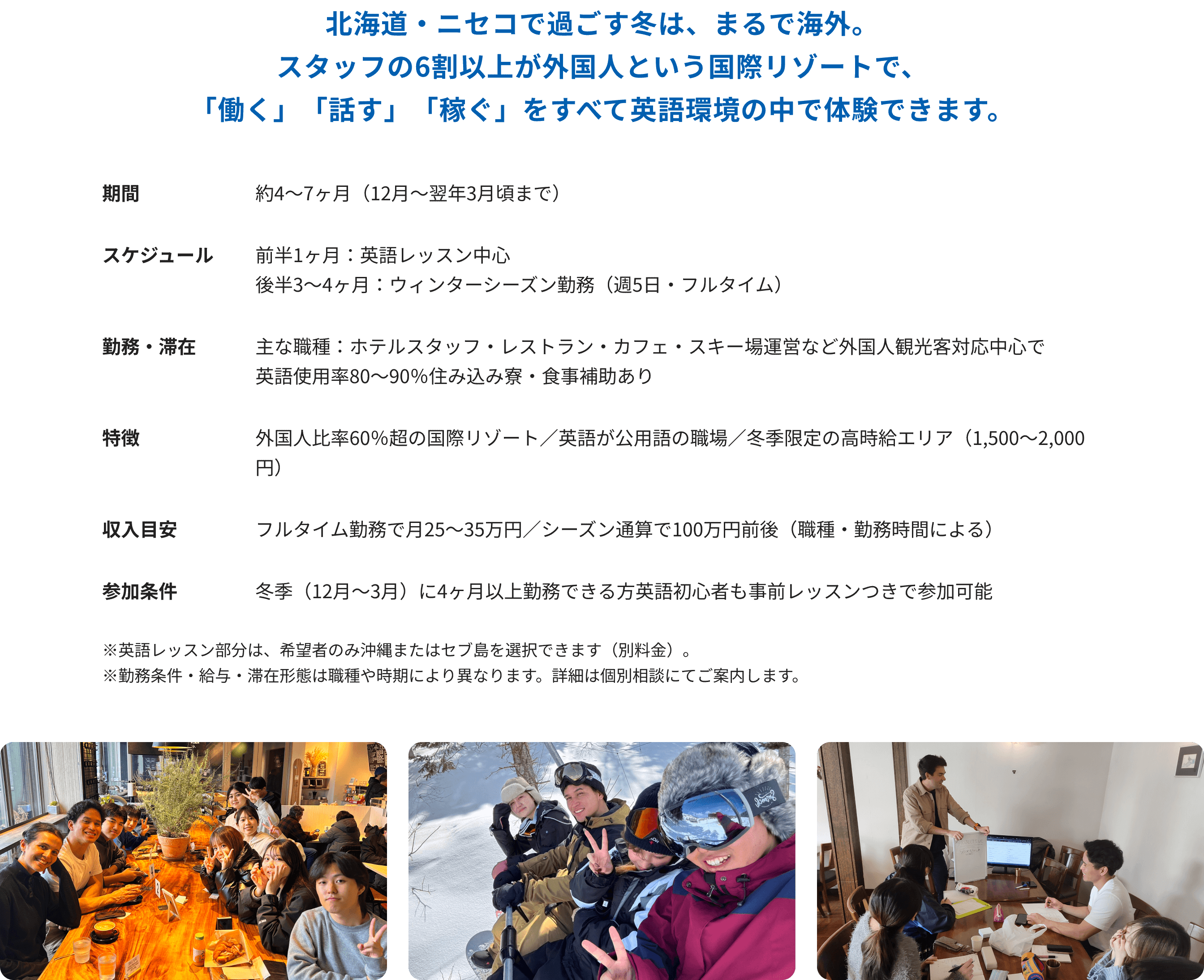 ニセコまたは沖縄で、外国人観光客を相手に「働きながら学ぶ」新しい挑戦のカタチです。
