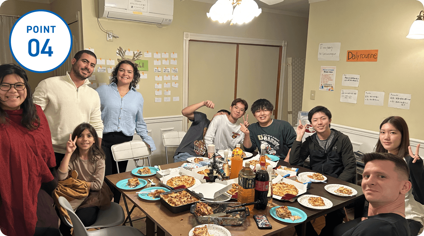 留学前にオンライン英会話や様々なプログラムを通し英語力にあうレッスンを講師より提供しています。また、ネイティブとの共同生活を行っているため、授業以外の時間にも英語に触れる生活を送ることができ、より実用的な英語を習得することが可能な環境を提供しています。
